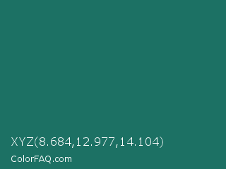 XYZ 8.684,12.977,14.104 Color is a dark cyan color and the nearest color is Genoa #15736b. Hex code #1c7164 and RGB value is rgb(28,113,100). In RGB color space, this color is composed of 11% red, 44% green, 39% blue, In CMYK color space, this color is composed of 75% cyan, 0% magenta, 12% yellow , 56% black , In HSL color space, this color has a hue angle of 171° , 60% saturation and 28% lightness.