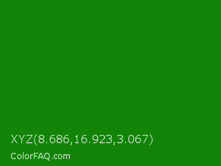 XYZ 8.686,16.923,3.067 Color is a dark green color and the nearest color is India Green #138808. Hex code #128509 and RGB value is rgb(18,133,9). In RGB color space, this color is composed of 7% red, 52% green, 4% blue, In CMYK color space, this color is composed of 86% cyan, 0% magenta, 93% yellow , 48% black , In HSL color space, this color has a hue angle of 116° , 87% saturation and 28% lightness.