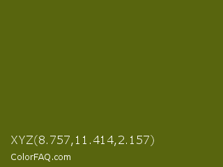 XYZ 8.757,11.414,2.157 Color is a dark yellow color and the nearest color is Saratoga #555b10. Hex code #58650e and RGB value is rgb(88,101,14). In RGB color space, this color is composed of 35% red, 40% green, 5% blue, In CMYK color space, this color is composed of 13% cyan, 0% magenta, 86% yellow , 60% black , In HSL color space, this color has a hue angle of 69° , 76% saturation and 23% lightness.