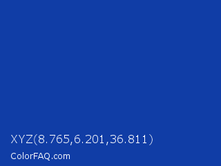 XYZ 8.765,6.201,36.811 Color is a normal blue color and the nearest color is Egyptian Blue #1034a6. Hex code #103da6 and RGB value is rgb(16,61,166). In RGB color space, this color is composed of 6% red, 24% green, 65% blue, In CMYK color space, this color is composed of 90% cyan, 63% magenta, 0% yellow , 35% black , In HSL color space, this color has a hue angle of 222° , 82% saturation and 36% lightness.