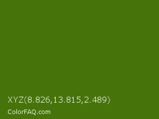 XYZ 8.826,13.815,2.489 Color is a dark green color and the nearest color is Green Leaf #436a0d. Hex code #46740a and RGB value is rgb(70,116,10). In RGB color space, this color is composed of 27% red, 45% green, 4% blue, In CMYK color space, this color is composed of 40% cyan, 0% magenta, 91% yellow , 55% black , In HSL color space, this color has a hue angle of 86° , 84% saturation and 25% lightness.