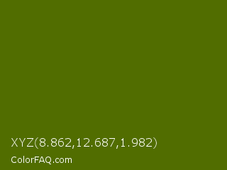 XYZ 8.862,12.687,1.982 Color is a very dark lime color and the nearest color is Green Leaf #436a0d. Hex code #516d00 and RGB value is rgb(81,109,0). In RGB color space, this color is composed of 32% red, 43% green, 0% blue, In CMYK color space, this color is composed of 26% cyan, 0% magenta, 100% yellow , 57% black , In HSL color space, this color has a hue angle of 75° , 100% saturation and 21% lightness.