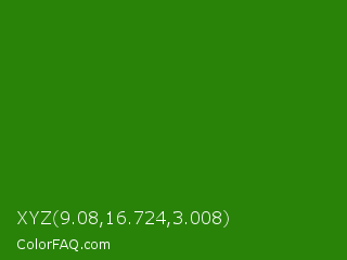 XYZ 9.08,16.724,3.008 Color is a dark green color and the nearest color is Napier Green #2a8000. Hex code #298309 and RGB value is rgb(41,131,9). In RGB color space, this color is composed of 16% red, 51% green, 4% blue, In CMYK color space, this color is composed of 69% cyan, 0% magenta, 93% yellow , 49% black , In HSL color space, this color has a hue angle of 104° , 87% saturation and 27% lightness.
