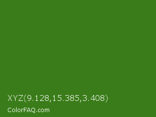 XYZ 9.128,15.385,3.408 Color is a dark green color and the nearest color is Bilbao #327c14. Hex code #3a7c19 and RGB value is rgb(58,124,25). In RGB color space, this color is composed of 23% red, 49% green, 10% blue, In CMYK color space, this color is composed of 53% cyan, 0% magenta, 80% yellow , 51% black , In HSL color space, this color has a hue angle of 100° , 66% saturation and 29% lightness.