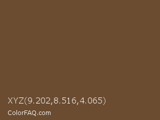 XYZ 9.202,8.516,4.065 Color is a normal orange color and the nearest color is Shingle Fawn #6b4e31. Hex code #6b4c31 and RGB value is rgb(107,76,49). In RGB color space, this color is composed of 42% red, 30% green, 19% blue, In CMYK color space, this color is composed of 0% cyan, 29% magenta, 54% yellow , 58% black , In HSL color space, this color has a hue angle of 28° , 37% saturation and 31% lightness.