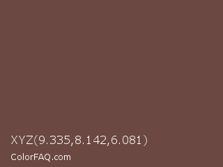 XYZ 9.335,8.142,6.081 Color is a normal red color and the nearest color is Rose Ebony #674846. Hex code #6b4841 and RGB value is rgb(107,72,65). In RGB color space, this color is composed of 42% red, 28% green, 25% blue, In CMYK color space, this color is composed of 0% cyan, 33% magenta, 39% yellow , 58% black , In HSL color space, this color has a hue angle of 10° , 24% saturation and 34% lightness.