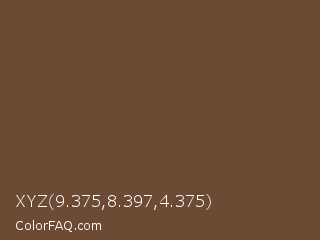 XYZ 9.375,8.397,4.375 Color is a normal orange color and the nearest color is Shingle Fawn #6b4e31. Hex code #6d4a34 and RGB value is rgb(109,74,52). In RGB color space, this color is composed of 43% red, 29% green, 20% blue, In CMYK color space, this color is composed of 0% cyan, 32% magenta, 52% yellow , 57% black , In HSL color space, this color has a hue angle of 23° , 35% saturation and 32% lightness.