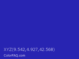 XYZ 9.542,4.927,42.568 Color is a normal indigo color and the nearest color is Governor Bay #2f3cb3. Hex code #2824b2 and RGB value is rgb(40,36,178). In RGB color space, this color is composed of 16% red, 14% green, 70% blue, In CMYK color space, this color is composed of 78% cyan, 80% magenta, 0% yellow , 30% black , In HSL color space, this color has a hue angle of 242° , 66% saturation and 42% lightness.