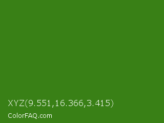 XYZ 9.551,16.366,3.415 Color is a dark green color and the nearest color is La Palma #368716. Hex code #398016 and RGB value is rgb(57,128,22). In RGB color space, this color is composed of 22% red, 50% green, 9% blue, In CMYK color space, this color is composed of 55% cyan, 0% magenta, 83% yellow , 50% black , In HSL color space, this color has a hue angle of 100° , 71% saturation and 29% lightness.