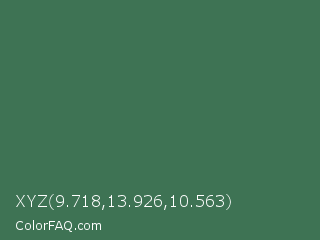 XYZ 9.718,13.926,10.563 Color is a normal green color and the nearest color is Amazon #3b7a57. Hex code #3e7354 and RGB value is rgb(62,115,84). In RGB color space, this color is composed of 24% red, 45% green, 33% blue, In CMYK color space, this color is composed of 46% cyan, 0% magenta, 27% yellow , 55% black , In HSL color space, this color has a hue angle of 145° , 30% saturation and 35% lightness.