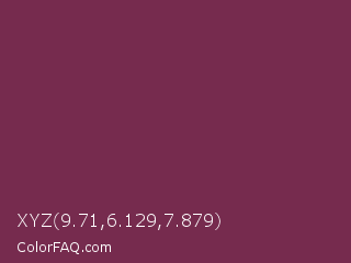 XYZ 9.71,6.129,7.879 Color is a normal rose color and the nearest color is Finn #692d54. Hex code #762b4e and RGB value is rgb(118,43,78). In RGB color space, this color is composed of 46% red, 17% green, 31% blue, In CMYK color space, this color is composed of 0% cyan, 64% magenta, 34% yellow , 54% black , In HSL color space, this color has a hue angle of 332° , 47% saturation and 32% lightness.