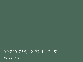 XYZ 9.756,12.32,11.315 Color is a normal green color and the nearest color is Finlandia #556d56. Hex code #4b6959 and RGB value is rgb(75,105,89). In RGB color space, this color is composed of 29% red, 41% green, 35% blue, In CMYK color space, this color is composed of 29% cyan, 0% magenta, 15% yellow , 59% black , In HSL color space, this color has a hue angle of 148° , 17% saturation and 35% lightness.