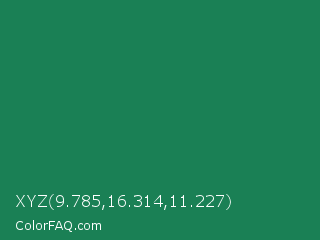 XYZ 9.785,16.314,11.227 Color is a dark green color and the nearest color is Deep Green Cyan Turquoise #0e7c61. Hex code #1a8055 and RGB value is rgb(26,128,85). In RGB color space, this color is composed of 10% red, 50% green, 33% blue, In CMYK color space, this color is composed of 80% cyan, 0% magenta, 34% yellow , 50% black , In HSL color space, this color has a hue angle of 155° , 66% saturation and 30% lightness.