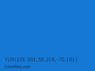 YUV 101.001,55.216,-70.161 Color is a normal blue color and the nearest color is Bright Navy Blue #1974d2. Hex code #1578d5 and RGB value is rgb(21,120,213). In RGB color space, this color is composed of 8% red, 47% green, 84% blue, In CMYK color space, this color is composed of 90% cyan, 44% magenta, 0% yellow , 16% black , In HSL color space, this color has a hue angle of 209° , 82% saturation and 46% lightness.