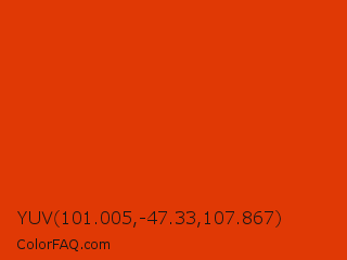 YUV 101.005,-47.33,107.867 Color is a normal red color and the nearest color is Grenadier #d54600. Hex code #e03905 and RGB value is rgb(224,57,5). In RGB color space, this color is composed of 88% red, 22% green, 2% blue, In CMYK color space, this color is composed of 0% cyan, 75% magenta, 98% yellow , 12% black , In HSL color space, this color has a hue angle of 14° , 96% saturation and 45% lightness.