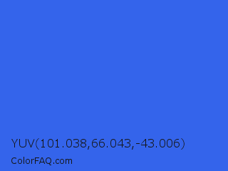 YUV 101.038,66.043,-43.006 Color is a normal blue color and the nearest color is Ultramarine Blue #4166f5. Hex code #3464eb and RGB value is rgb(52,100,235). In RGB color space, this color is composed of 20% red, 39% green, 92% blue, In CMYK color space, this color is composed of 78% cyan, 57% magenta, 0% yellow , 8% black , In HSL color space, this color has a hue angle of 224° , 82% saturation and 56% lightness.