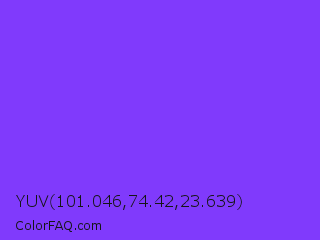 YUV 101.046,74.42,23.639 Color is a light violet color and the nearest color is Blue Violet #8a2be2. Hex code #803afc and RGB value is rgb(128,58,252). In RGB color space, this color is composed of 50% red, 23% green, 99% blue, In CMYK color space, this color is composed of 49% cyan, 77% magenta, 0% yellow , 1% black , In HSL color space, this color has a hue angle of 262° , 97% saturation and 61% lightness.