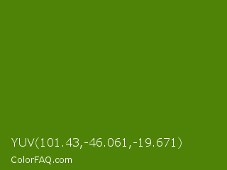 YUV 101.43,-46.061,-19.671 Color is a dark green color and the nearest color is Avocado #568203. Hex code #4f8308 and RGB value is rgb(79,131,8). In RGB color space, this color is composed of 31% red, 51% green, 3% blue, In CMYK color space, this color is composed of 40% cyan, 0% magenta, 94% yellow , 49% black , In HSL color space, this color has a hue angle of 85° , 88% saturation and 27% lightness.