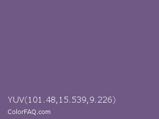 YUV 101.48,15.539,9.226 Color is a normal purple color and the nearest color is Rum #796989. Hex code #705a85 and RGB value is rgb(112,90,133). In RGB color space, this color is composed of 44% red, 35% green, 52% blue, In CMYK color space, this color is composed of 16% cyan, 32% magenta, 0% yellow , 48% black , In HSL color space, this color has a hue angle of 271° , 19% saturation and 44% lightness.