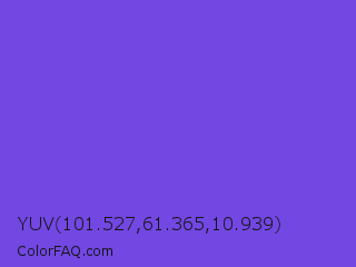 YUV 101.527,61.365,10.939 Color is a normal indigo color and the nearest color is Majorelle Blue #6050dc. Hex code #7247e2 and RGB value is rgb(114,71,226). In RGB color space, this color is composed of 45% red, 28% green, 89% blue, In CMYK color space, this color is composed of 50% cyan, 69% magenta, 0% yellow , 11% black , In HSL color space, this color has a hue angle of 257° , 73% saturation and 58% lightness.