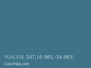 YUV 101.547,16.985,-34.683 Color is a normal blue color and the nearest color is Teal Blue #367588. Hex code #3e7388 and RGB value is rgb(62,115,136). In RGB color space, this color is composed of 24% red, 45% green, 53% blue, In CMYK color space, this color is composed of 54% cyan, 15% magenta, 0% yellow , 47% black , In HSL color space, this color has a hue angle of 197° , 37% saturation and 39% lightness.