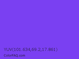 YUV 101.634,69.2,17.861 Color is a normal indigo color and the nearest color is Blue Violet #8a2be2. Hex code #7a40f2 and RGB value is rgb(122,64,242). In RGB color space, this color is composed of 48% red, 25% green, 95% blue, In CMYK color space, this color is composed of 50% cyan, 74% magenta, 0% yellow , 5% black , In HSL color space, this color has a hue angle of 260° , 87% saturation and 60% lightness.