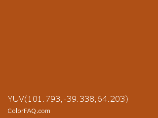 YUV 101.793,-39.338,64.203 Color is a normal orange color and the nearest color is Fiery Orange #b35213. Hex code #af5016 and RGB value is rgb(175,80,22). In RGB color space, this color is composed of 69% red, 31% green, 9% blue, In CMYK color space, this color is composed of 0% cyan, 54% magenta, 87% yellow , 31% black , In HSL color space, this color has a hue angle of 23° , 78% saturation and 39% lightness.