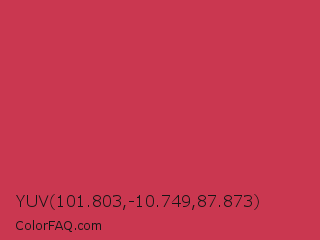 YUV 101.803,-10.749,87.873 Color is a normal red color and the nearest color is Dingy Dungeon #c53151. Hex code #ca3750 and RGB value is rgb(202,55,80). In RGB color space, this color is composed of 79% red, 22% green, 31% blue, In CMYK color space, this color is composed of 0% cyan, 73% magenta, 60% yellow , 21% black , In HSL color space, this color has a hue angle of 350° , 58% saturation and 50% lightness.