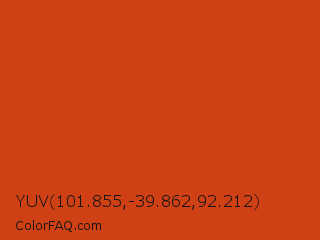 YUV 101.855,-39.862,92.212 Color is a normal red color and the nearest color is Sinopia #cb410b. Hex code #cf4015 and RGB value is rgb(207,64,21). In RGB color space, this color is composed of 81% red, 25% green, 8% blue, In CMYK color space, this color is composed of 0% cyan, 69% magenta, 90% yellow , 19% black , In HSL color space, this color has a hue angle of 14° , 82% saturation and 45% lightness.