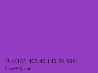 YUV 102.403,46.143,39.989 Color is a normal purple color and the nearest color is Dark Orchid #9932cc. Hex code #943dc4 and RGB value is rgb(148,61,196). In RGB color space, this color is composed of 58% red, 24% green, 77% blue, In CMYK color space, this color is composed of 24% cyan, 69% magenta, 0% yellow , 23% black , In HSL color space, this color has a hue angle of 279° , 53% saturation and 50% lightness.