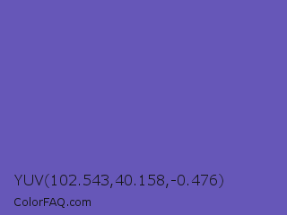 YUV 102.543,40.158,-0.476 Color is a normal indigo color and the nearest color is Blue Violet #6456b7. Hex code #6657b8 and RGB value is rgb(102,87,184). In RGB color space, this color is composed of 40% red, 34% green, 72% blue, In CMYK color space, this color is composed of 45% cyan, 53% magenta, 0% yellow , 28% black , In HSL color space, this color has a hue angle of 249° , 41% saturation and 53% lightness.