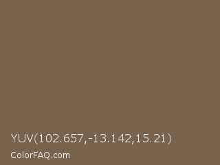 YUV 102.657,-13.142,15.21 Color is a normal orange color and the nearest color is Roman Coffee #795d4c. Hex code #78634c and RGB value is rgb(120,99,76). In RGB color space, this color is composed of 47% red, 39% green, 30% blue, In CMYK color space, this color is composed of 0% cyan, 18% magenta, 37% yellow , 53% black , In HSL color space, this color has a hue angle of 31° , 22% saturation and 38% lightness.