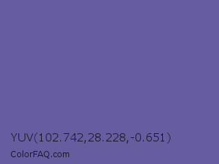 YUV 102.742,28.228,-0.651 Color is a normal indigo color and the nearest color is Scampi #675fa6. Hex code #665ca0 and RGB value is rgb(102,92,160). In RGB color space, this color is composed of 40% red, 36% green, 63% blue, In CMYK color space, this color is composed of 36% cyan, 43% magenta, 0% yellow , 37% black , In HSL color space, this color has a hue angle of 249° , 27% saturation and 49% lightness.