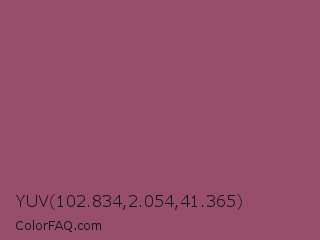 YUV 102.834,2.054,41.365 Color is a normal rose color and the nearest color is Sugar Plum #914e75. Hex code #964e6b and RGB value is rgb(150,78,107). In RGB color space, this color is composed of 59% red, 31% green, 42% blue, In CMYK color space, this color is composed of 0% cyan, 48% magenta, 29% yellow , 41% black , In HSL color space, this color has a hue angle of 336° , 32% saturation and 45% lightness.