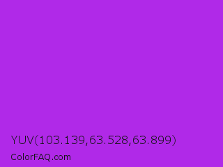 YUV 103.139,63.528,63.899 Color is a normal purple color and the nearest color is Veronica #a020f0. Hex code #b029e8 and RGB value is rgb(176,41,232). In RGB color space, this color is composed of 69% red, 16% green, 91% blue, In CMYK color space, this color is composed of 24% cyan, 82% magenta, 0% yellow , 9% black , In HSL color space, this color has a hue angle of 282° , 81% saturation and 54% lightness.