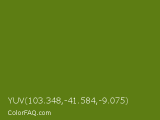 YUV 103.348,-41.584,-9.075 Color is a dark lime color and the nearest color is Avocado #568203. Hex code #5d7d13 and RGB value is rgb(93,125,19). In RGB color space, this color is composed of 36% red, 49% green, 7% blue, In CMYK color space, this color is composed of 26% cyan, 0% magenta, 85% yellow , 51% black , In HSL color space, this color has a hue angle of 78° , 74% saturation and 28% lightness.