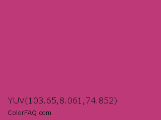 YUV 103.65,8.061,74.852 Color is a normal rose color and the nearest color is Medium Red Violet #bb3385. Hex code #bd3978 and RGB value is rgb(189,57,120). In RGB color space, this color is composed of 74% red, 22% green, 47% blue, In CMYK color space, this color is composed of 0% cyan, 70% magenta, 37% yellow , 26% black , In HSL color space, this color has a hue angle of 331° , 54% saturation and 48% lightness.