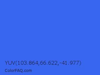 YUV 103.864,66.622,-41.977 Color is a normal blue color and the nearest color is Ultramarine Blue #4166f5. Hex code #3866ef and RGB value is rgb(56,102,239). In RGB color space, this color is composed of 22% red, 40% green, 94% blue, In CMYK color space, this color is composed of 77% cyan, 57% magenta, 0% yellow , 6% black , In HSL color space, this color has a hue angle of 225° , 85% saturation and 58% lightness.