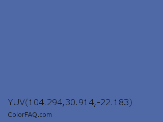 YUV 104.294,30.914,-22.183 Color is a normal blue color and the nearest color is Blue Yonder #5072a7. Hex code #4f69a7 and RGB value is rgb(79,105,167). In RGB color space, this color is composed of 31% red, 41% green, 65% blue, In CMYK color space, this color is composed of 53% cyan, 37% magenta, 0% yellow , 35% black , In HSL color space, this color has a hue angle of 222° , 36% saturation and 48% lightness.