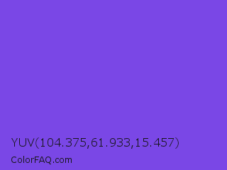 YUV 104.375,61.933,15.457 Color is a normal indigo color and the nearest color is Majorelle Blue #6050dc. Hex code #7a47e6 and RGB value is rgb(122,71,230). In RGB color space, this color is composed of 48% red, 28% green, 90% blue, In CMYK color space, this color is composed of 47% cyan, 69% magenta, 0% yellow , 10% black , In HSL color space, this color has a hue angle of 259° , 76% saturation and 59% lightness.