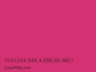 YUV 104.549,4.659,92.481 Color is a normal rose color and the nearest color is Telemagenta #cf3476. Hex code #d23172 and RGB value is rgb(210,49,114). In RGB color space, this color is composed of 82% red, 19% green, 45% blue, In CMYK color space, this color is composed of 0% cyan, 77% magenta, 46% yellow , 18% black , In HSL color space, this color has a hue angle of 336° , 64% saturation and 51% lightness.