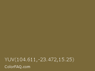 YUV 104.611,-23.472,15.25 Color is a normal orange color and the nearest color is Yellow Metal #716338. Hex code #7a6939 and RGB value is rgb(122,105,57). In RGB color space, this color is composed of 48% red, 41% green, 22% blue, In CMYK color space, this color is composed of 0% cyan, 14% magenta, 53% yellow , 52% black , In HSL color space, this color has a hue angle of 44° , 36% saturation and 35% lightness.