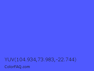 YUV 104.934,73.983,-22.744 Color is a light blue color and the nearest color is Ultramarine Blue #4166f5. Hex code #4f59ff and RGB value is rgb(79,89,255). In RGB color space, this color is composed of 31% red, 35% green, 100% blue, In CMYK color space, this color is composed of 69% cyan, 65% magenta, 0% yellow , 0% black , In HSL color space, this color has a hue angle of 237° , 100% saturation and 65% lightness.