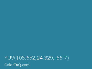 YUV 105.652,24.329,-56.7 Color is a normal blue color and the nearest color is Jelly Bean #297b9a. Hex code #29819b and RGB value is rgb(41,129,155). In RGB color space, this color is composed of 16% red, 51% green, 61% blue, In CMYK color space, this color is composed of 74% cyan, 17% magenta, 0% yellow , 39% black , In HSL color space, this color has a hue angle of 194° , 58% saturation and 38% lightness.