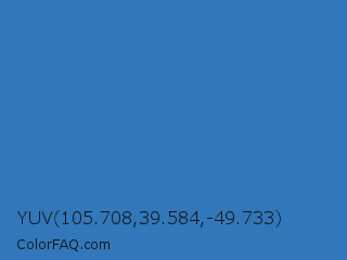 YUV 105.708,39.584,-49.733 Color is a normal blue color and the nearest color is Cyan Blue Azure #4682bf. Hex code #3177ba and RGB value is rgb(49,119,186). In RGB color space, this color is composed of 19% red, 47% green, 73% blue, In CMYK color space, this color is composed of 74% cyan, 36% magenta, 0% yellow , 27% black , In HSL color space, this color has a hue angle of 209° , 58% saturation and 46% lightness.