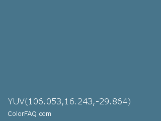 YUV 106.053,16.243,-29.864 Color is a normal blue color and the nearest color is Bismark #497183. Hex code #48758b and RGB value is rgb(72,117,139). In RGB color space, this color is composed of 28% red, 46% green, 55% blue, In CMYK color space, this color is composed of 48% cyan, 16% magenta, 0% yellow , 45% black , In HSL color space, this color has a hue angle of 200° , 32% saturation and 41% lightness.