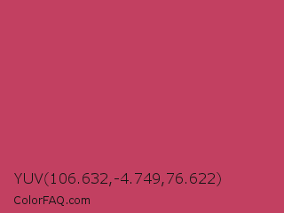 YUV 106.632,-4.749,76.622 Color is a normal red color and the nearest color is Popstar #be4f62. Hex code #c24061 and RGB value is rgb(194,64,97). In RGB color space, this color is composed of 76% red, 25% green, 38% blue, In CMYK color space, this color is composed of 0% cyan, 67% magenta, 50% yellow , 24% black , In HSL color space, this color has a hue angle of 345° , 52% saturation and 51% lightness.