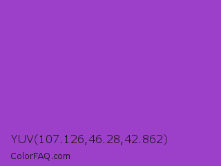 YUV 107.126,46.28,42.862 Color is a normal purple color and the nearest color is Dark Orchid #9932cc. Hex code #9c40c9 and RGB value is rgb(156,64,201). In RGB color space, this color is composed of 61% red, 25% green, 79% blue, In CMYK color space, this color is composed of 22% cyan, 68% magenta, 0% yellow , 21% black , In HSL color space, this color has a hue angle of 280° , 56% saturation and 52% lightness.
