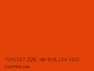 YUV 107.228,-48.919,104.163 Color is a normal orange color and the nearest color is Trinidad #e64e03. Hex code #e24208 and RGB value is rgb(226,66,8). In RGB color space, this color is composed of 89% red, 26% green, 3% blue, In CMYK color space, this color is composed of 0% cyan, 71% magenta, 96% yellow , 11% black , In HSL color space, this color has a hue angle of 16° , 93% saturation and 46% lightness.