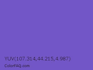 YUV 107.314,44.215,4.987 Color is a normal indigo color and the nearest color is Fuchsia Blue #7a58c1. Hex code #7157c5 and RGB value is rgb(113,87,197). In RGB color space, this color is composed of 44% red, 34% green, 77% blue, In CMYK color space, this color is composed of 43% cyan, 56% magenta, 0% yellow , 23% black , In HSL color space, this color has a hue angle of 254° , 49% saturation and 56% lightness.